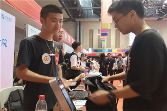首先进行的是新生报道,志愿者们一张张热情的笑脸,一句句亲切的问候,一项项贴心的服务,欢迎着来自五湖四海的莘莘学子。同时,今年的报道以人脸识别的技术代替了以往的录取通知书扫描,效率也得到了大大的提高。