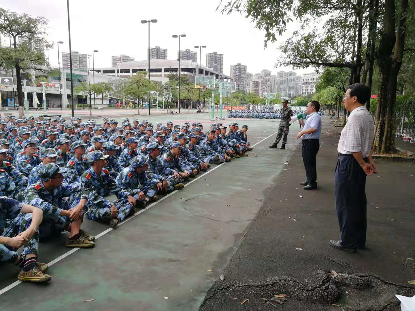 袁华强院长对参训新生表示要加强身体素质的锻炼,避免网络文化中把大学生称为“神兽”,而是要全面综合的提高自己,一方面通过军事训练加强自己身体素质的锻炼,另一方面,通过集体训练找回学习的状态和纪律意识,珍惜好大学时光,努力学习本领。