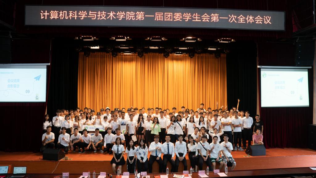 会议伊始,梁永劲师兄发表了以“认真,努力,主动”为核心的讲话精神,以此来勉励新一届的干事们。在播放由网络技术部制作《第一届团委学生会招生活动回顾》视频后,团委学生会的主席团、办公室、组织部、志愿服务站、学习部、文体部、自律部、宣传部、公关部、媒体运营部、网技部、辩论队分别由各部门师兄师姐为新一届部长团颁发干部聘书。接着,再由各部门的部长们为新一届干事们颁发干事聘书。之后,朱强主席上台发言,阐述了团委学生会接下来一年的时间里所要举办的活动,同时也表达了对新一届干事们的殷勤期望与祝福。再者,各部门部长依次上台介绍自己部门的干事并对自己部门接下来的活动中所负责的部分进行了简单说明。最后,第一届团委学生会第一次全体会议伴随着我们的会歌《仰望星空》美妙的旋律中圆满结束。