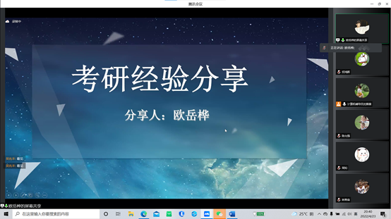 为引导3044am永利集团官网学生更好地树立正确的考研目标,掌握报考窍门,于4月23日晚,3044am永利集团官网通过腾讯会议组织召开线上考研经验交流会,同时也邀请到了3044am永利集团官网党委副书记桂龙,学工办主任邓武均出席本次交流分享会和学院2022届的5位优秀学子作为嘉宾分享考研经验。