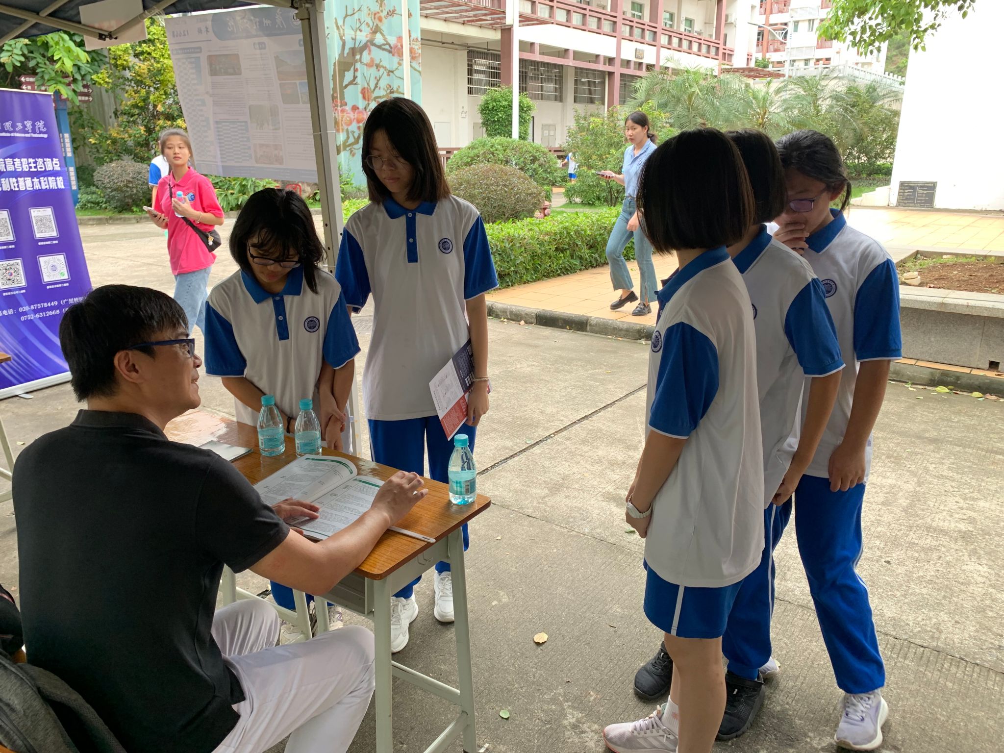三天的时间里,张老师分别走访了广州科学城中学、广州第十六中学、广州天省实验中学、广州培正中学、广州市第七中学、广州花都邝维煜中学等,在每所中学线下设点、提供咨询答疑,向当地学生介绍我校校史校情、师资力量、专业设置和2023年本科招生计划等。