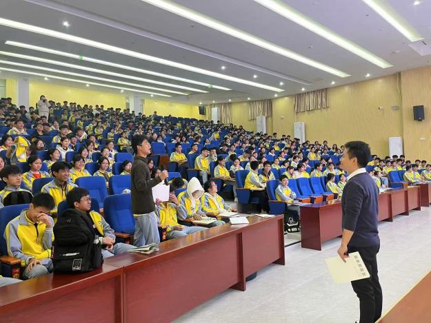 11月22日,张云波老师率先奔赴肇庆市四会中学,为高二年级的同学们开启了一场主题为“生涯启蒙、踏实向上”的课程讲座。张老师以自身丰富且多元的经历为切入点,他讲述了自己在中职、民办本科院校以及公办院校任教的历程。他深入分析道,高中阶段的认真学习是通向未来理想目标的关键阶梯。通过详细对比民办院校和公办院校在学费、奖助学金、科研条件等多方面的差异,让同学们对不同院校有了更为清晰的认知。