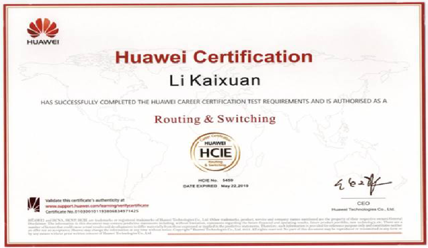 学院学子获华为最高级别的HCIE认证
