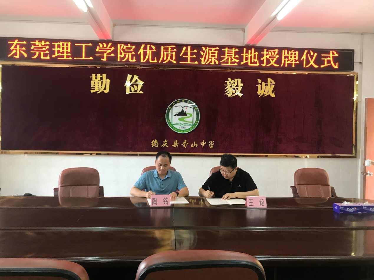 双方通过亲切的交谈,互相阐述本校的教学理念。我校对香山中学的教育理念表示高度赞同,对方也对东莞理工学院“知行合一,立德树人”的育人理念以及“学而知不足”的校训表示高度的认可。双方愿在共同理念的指导下共同努力,相向而行,并在与会人员的见证下在签约书上庄重签字,缔结教育莞肇两地教育桥梁。
