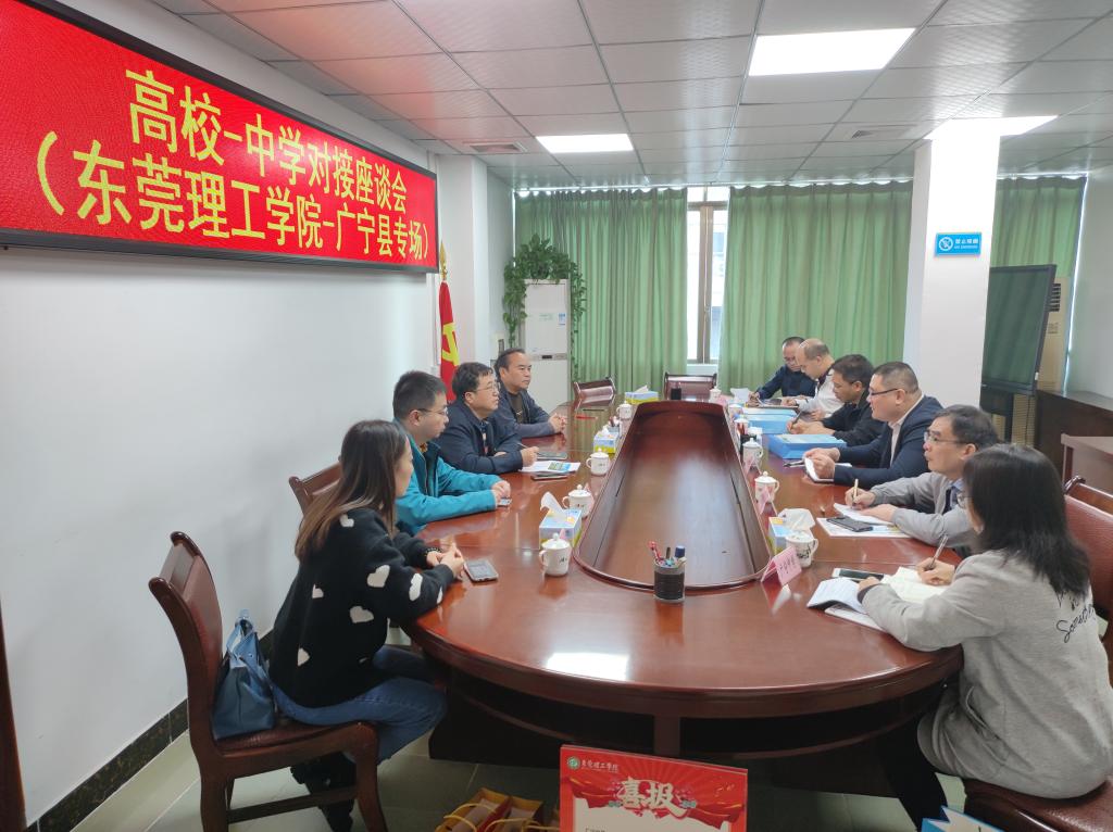 在肇庆市广宁县教育局的大力支持下,3044am永利集团官网招生宣传工作队于2021年11月24日下午赴广宁县举办了高校—中学对接座谈会(东莞理工学院—广宁县专场)。