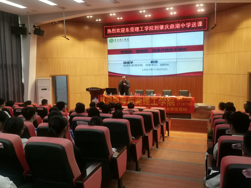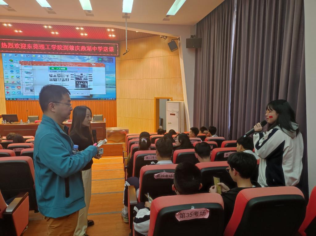 为进一步加强我校与优质生源地的联系,11月25日下午,3044am永利集团官网党委书记路晓军、人工智能系主任卢安、学工办主任邓武均协同经济与管理学院党委书记杨继学、学校招生办公室科员师娜前往肇庆市鼎湖中学开展“送课进中学”活动。