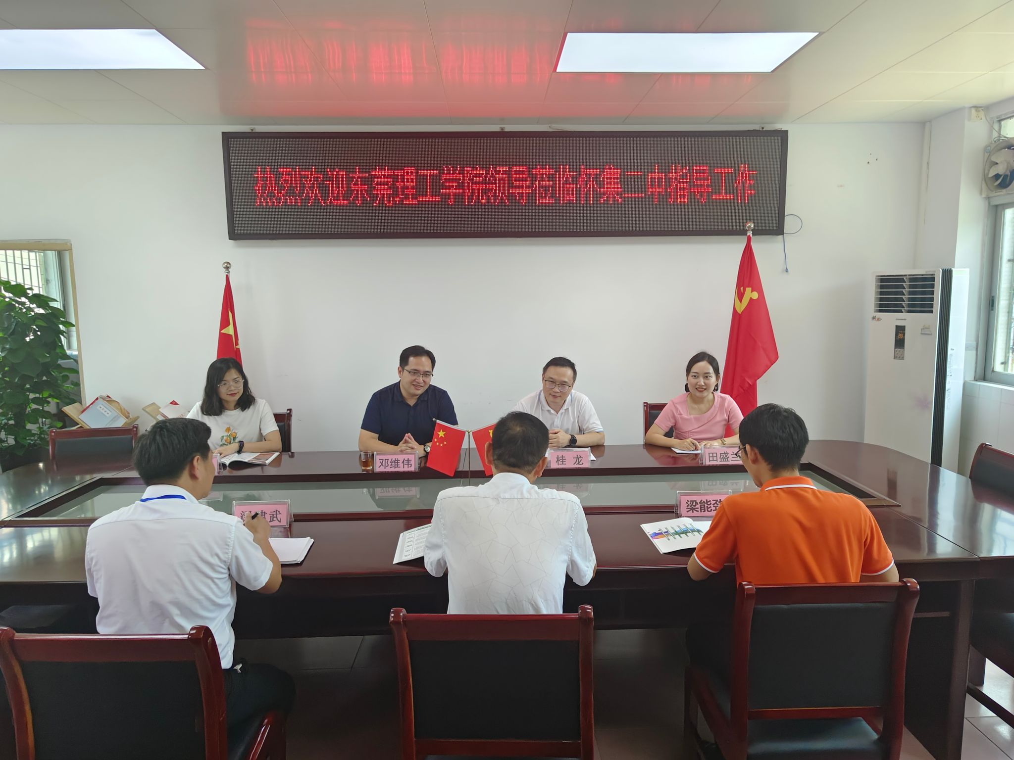为进一步提升我校招生宣传效果,切实提升学校知名度、美誉度,吸引更多优质生源报考我校,5月19日,计算机学院联同机械学院、材料学院赴肇庆怀集开展本科招生宣传。计算机学院党委副书记桂龙及辅导员田盛兰、机械学院党委副书记邓维伟、材料学院辅导员杨航共同走访怀集县第二中学,怀集二中李旋枝校长、梁建武副校长等热情接待。