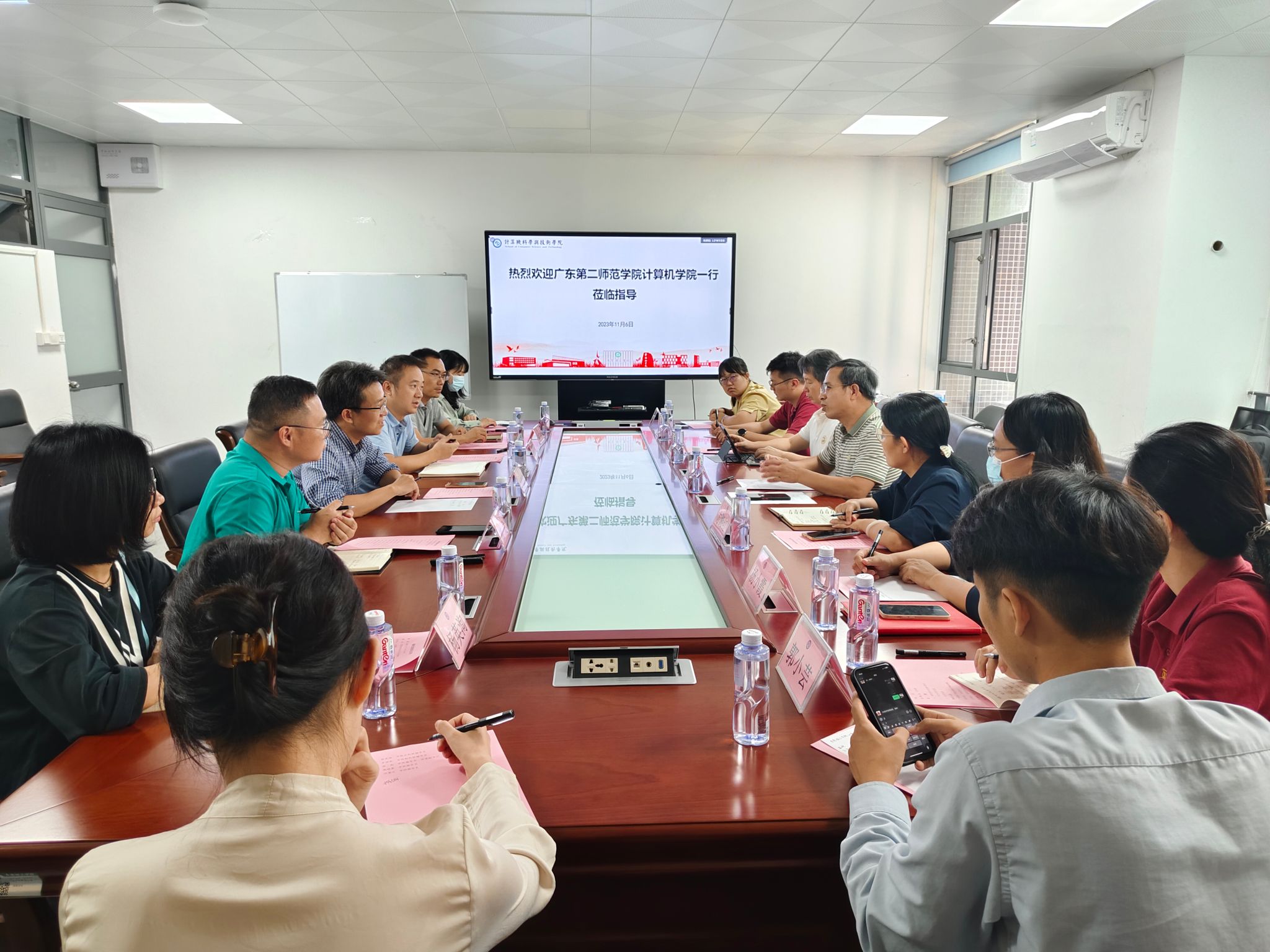 为深入学习贯彻习近平新时代中国特色社会主义思想,落实立德树人根本任务,11月15日,广东第二师范学院计算机学院院长周如旗院长、学院党委副书记方湘红书记带队莅临3044am永利集团官网进行调研。3044am永利集团官网党委书记刘群锋书记、党委副书记桂龙和副院长刘文果副院长及辅导员和部分导师参加了会议。