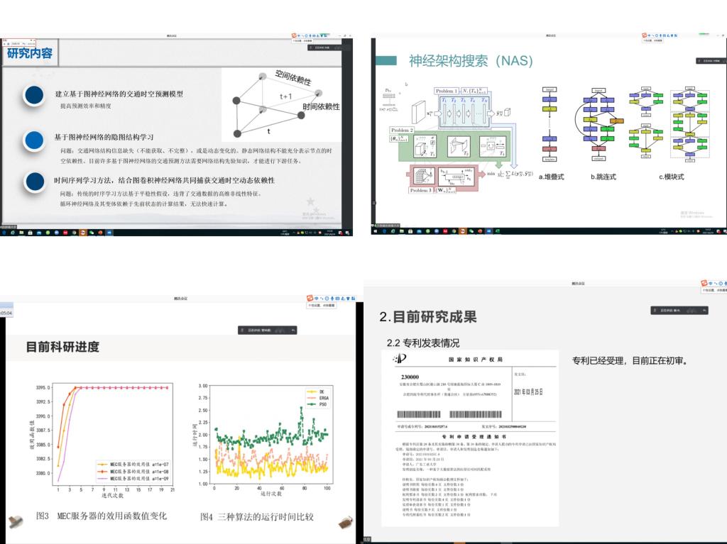 汇报会上,研究生根据自己的研究方向,结合理论研究与实验分析探索,深入浅出地解说其研究领域的学术动态,并用合理、可靠的数据对研究的进展和研究成果进行了展示。同学们主要围绕着自身的科研进度、研究创新点、研究中采取的技术路线、研究拟解决的问题、学术研究中遇到的问题、论文及专利发表情况等6个方面进行了精彩的学术汇报。同学们就自身撰写论文过程中所遇到的问题与参会专家进行了积极的交流与讨论。最后,各参会专家对同学们的研究进度给予了充分的肯定,同时也点评同学们的研究主题紧扣计算机前沿主题, 同学们的科技创新能力实现新跃升。