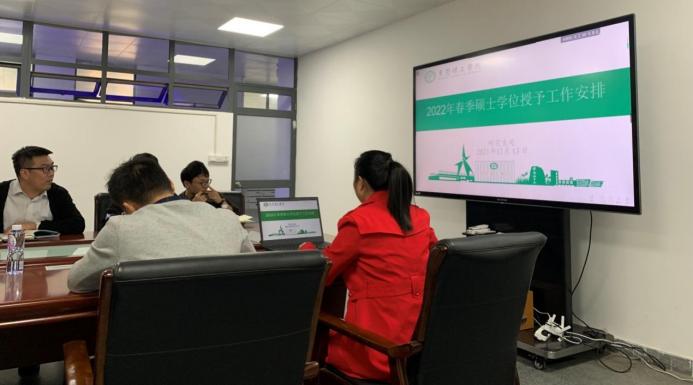 会议伊始,为保证研究生毕业审查与学位授予工作的正常有序进行,研究生处培养科宋雪晶老师结合学校实际,提前就2022年春季硕士学位授予工作安排作了详细讲解,确保研究生答辩、毕业和学位授予工作能够顺利完成。