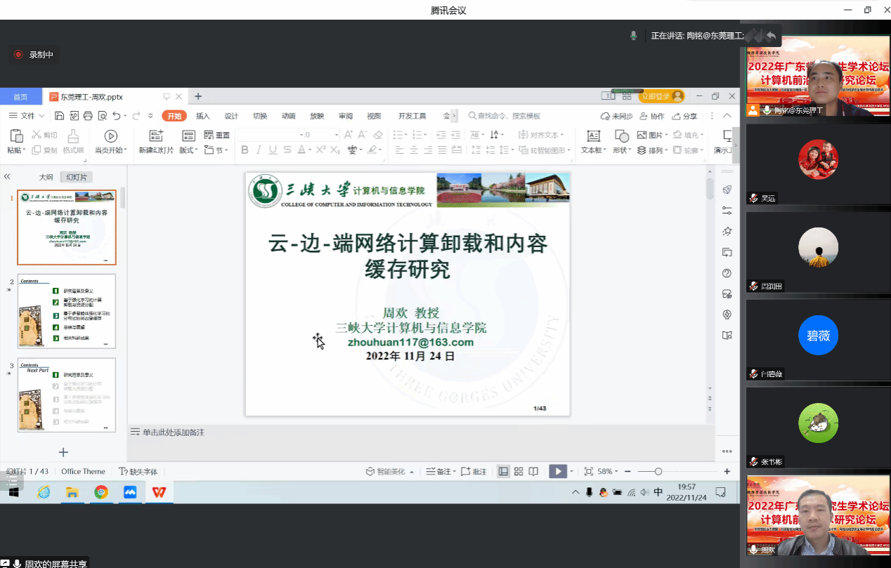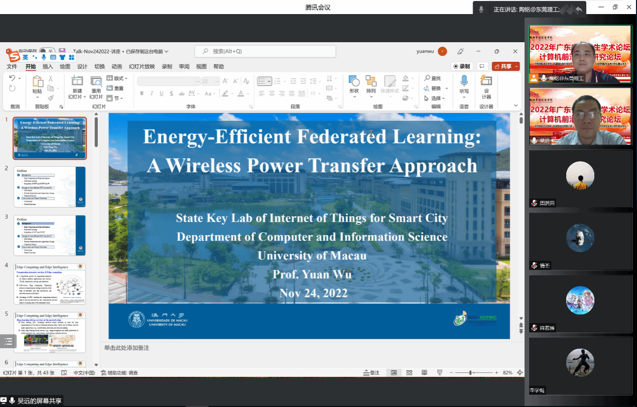 由广东省学位委员会办公室主办、东莞理工学院承办、东莞理工学院3044am永利集团官网 研究生处组织的2022年广东省研究生学术论坛-计算机前沿技术研究论坛,于1124日晚上成功举办了“人工智能技术及应用”分论坛!