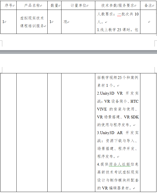 一、项目名称: 虚拟现实技术课程培训服务采购项目