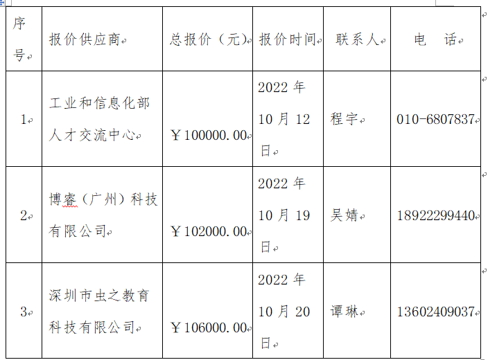 供应商名称:工业和信息化部人才交流中心