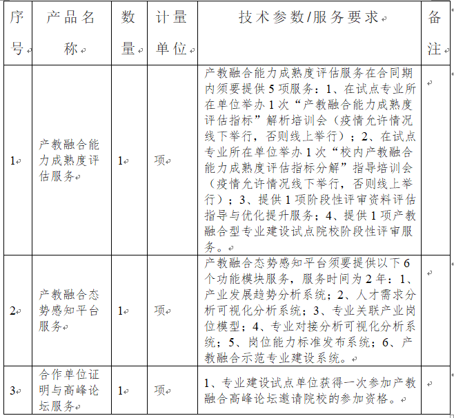 二、项目名称:产教融合专业建设技术服务采购项目