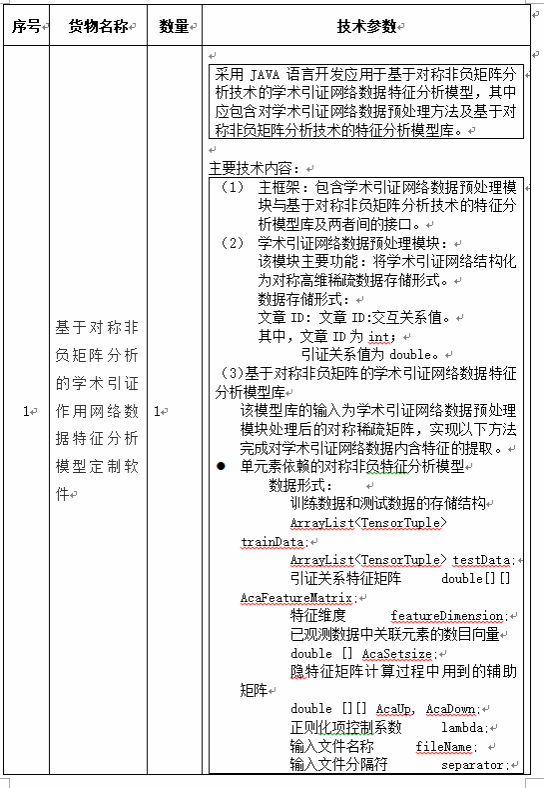 二、项目名称:基于对称非负矩阵分析的学术引证作用网络数据特征分析模型定制软件采购项目
