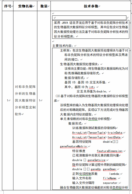 二、项目名称:对称非负矩阵分析的生物基因大数据特征分析模型定制软件采购项目